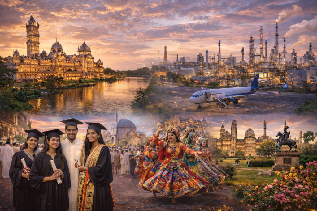 Vadodara, formerly known as Baroda, is one of Gujarat’s most historically rich, culturally vibrant, and rapidly developing cities. Situated on the banks of the Vishwamitri River, Vadodara is the third-largest city in the state and serves as the administrative headquarters of Vadodara District. The city is widely admired for its balanced character—where royal heritage, artistic excellence, academic brilliance, and modern industry coexist seamlessly.