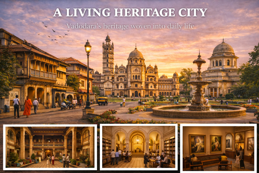 Many of the city’s grand structures, wide roads, gardens, and institutions were established during this golden era, leaving a lasting impact on Vadodara’s urban and cultural landscape.