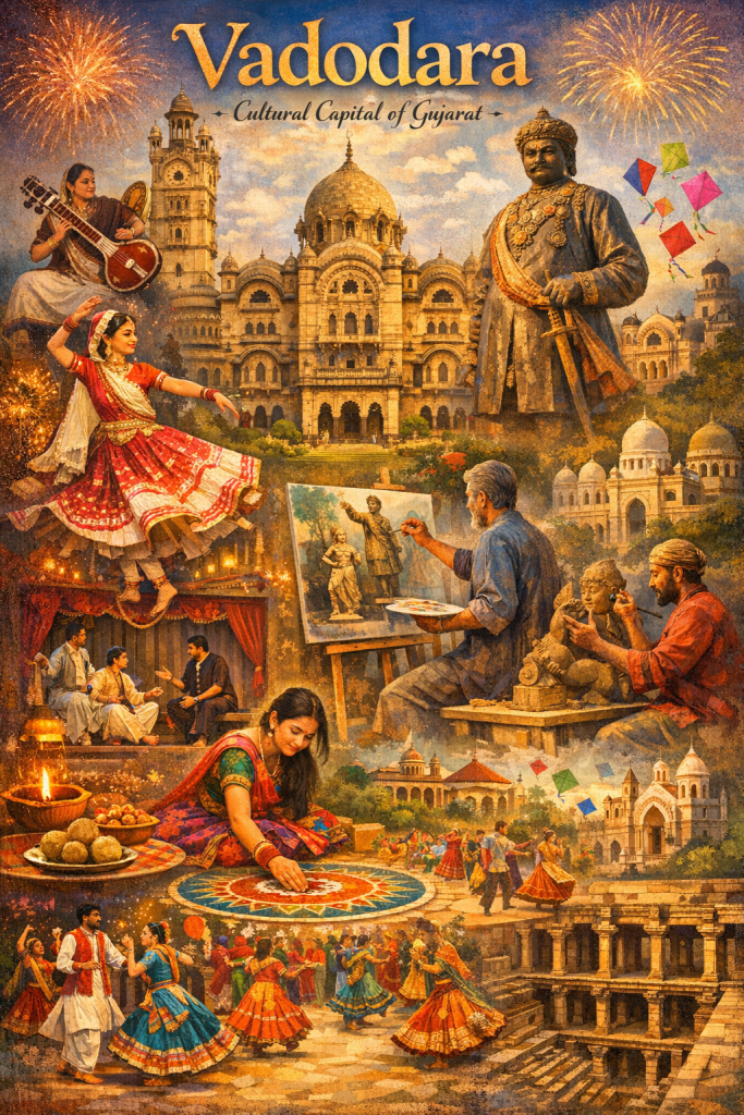 Vadodara proudly holds the title of the Cultural Capital of Gujarat, a recognition built on centuries of artistic patronage, intellectual growth, and cultural continuity. The city’s cultural foundation was firmly established during the rule of the Gaekwad dynasty, especially under Maharaja Sayajirao Gaekwad III, whose progressive vision emphasized education, fine arts, music, and social reform. This enlightened support transformed Vadodara into a thriving center of creativity and learning, attracting artists, scholars, and performers from across India.